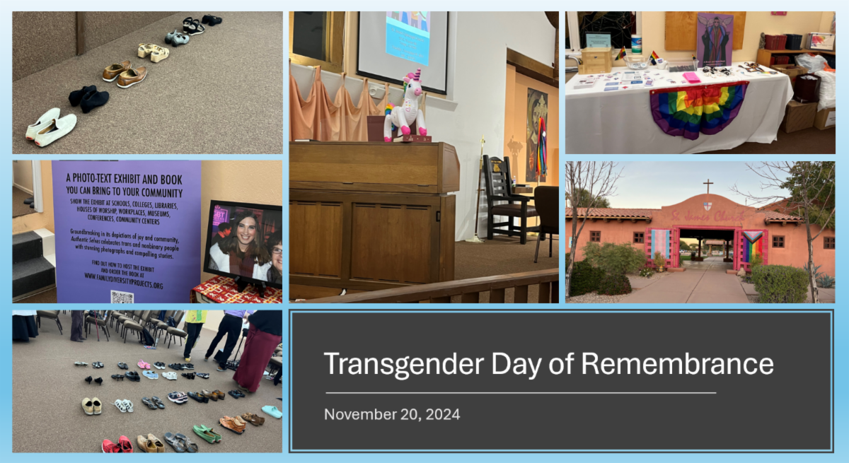 My family and Linda Stenholm represented VUU at the Transgender Day of Remembrance last week. The shoes reference trans folks who were killed over the last year. Rev. Sarah