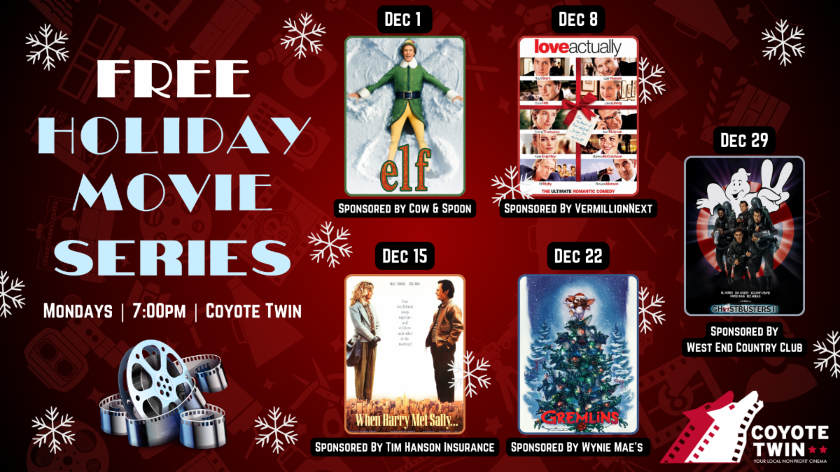 In the giving spirit, we've arranged some special happenings for you. This week we've scheduled some Thanksgiving showtimes to help you entertain the fam between big meals and shopping sprees. Our Holiday Pop-Up Shop is operating in the Coyote Gallery now through December 23, and we will have some extra good deals at the Coyote Twin for Small Business Saturday. And in December, we have a whole month of FREE Community Monday movies as gifts to Vermillion from local businesses. Scroll down for more information on all of the fun!