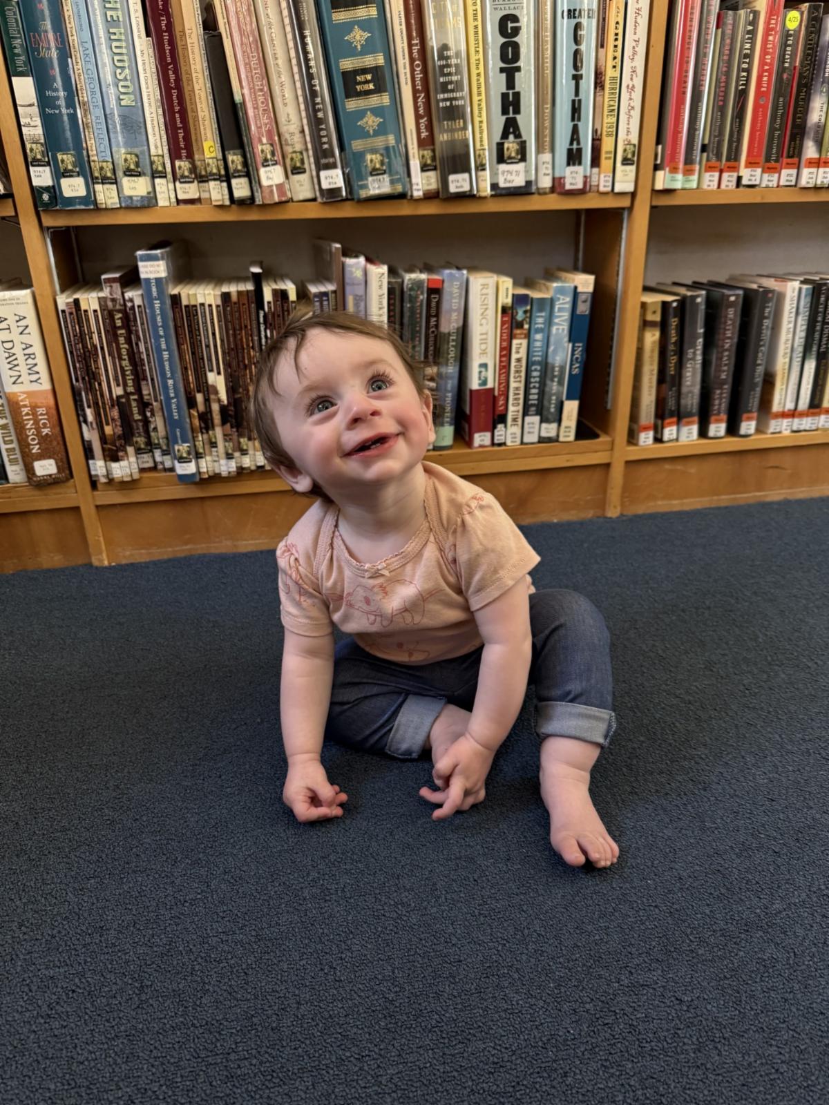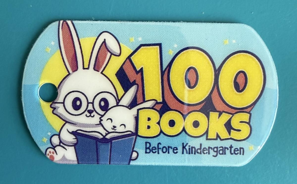 Congratulations to Violet F. and family for reading their first 100 books as part of our 1000 Books Before Kindergarten program! Violet's mom received a special necklace with a badge to commemorate this milestone - she can keep adding badges for Violet as she and her family read more books to reach their goal! Anyone interested in the program can contact our library for more information.
