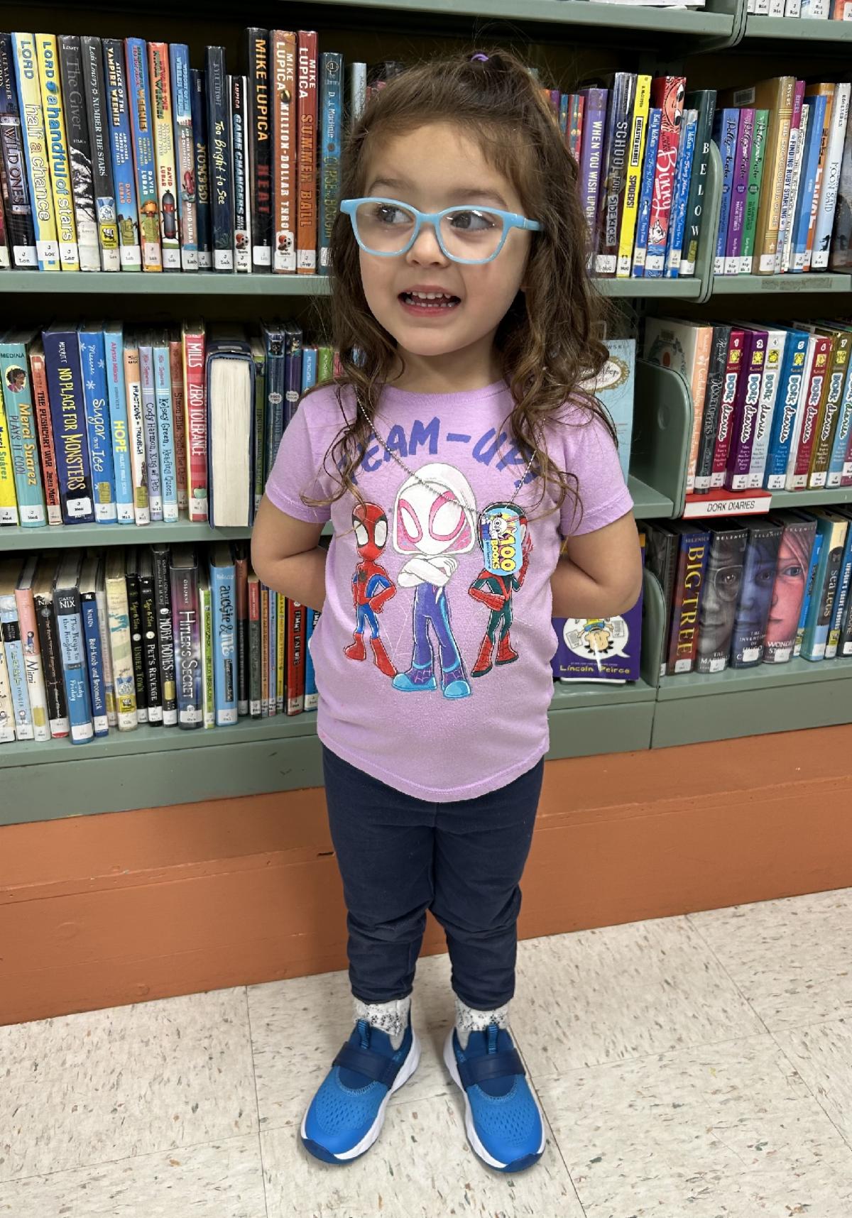 We'd like to congratulate Peyton T. and family for reading their first 100 books as part of this program! Peyton received a special necklace with a badge to commemorate this milestone - she can keep adding badges as she and her family read more books to reach their final goal!