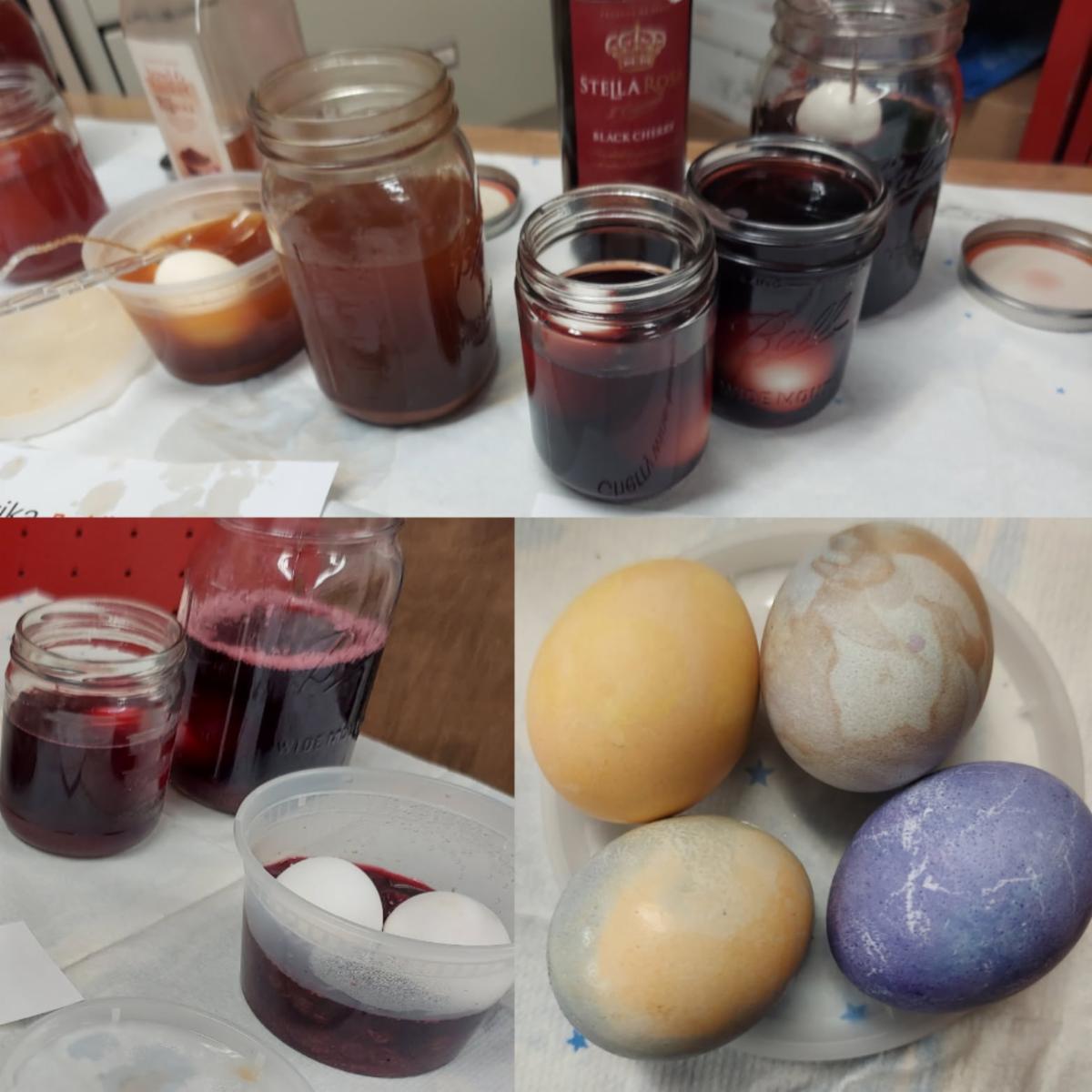 | | Workshop Wednesday: Natural Egg Dyes | | On Workshop Wednesday, we had fun with natural egg dyes. Using onion skins, paprika, blueberries, wine, and tea. They were all great, but blueberries were the favorite! Stop by the library for a natural egg dye information sheet. | | | |