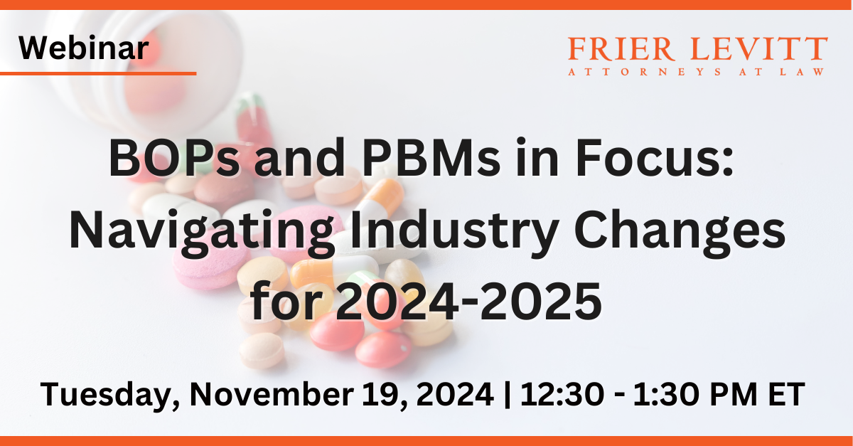 Frier Levitt attorneys Dae Y. Lee, Lucas Morgan and Nicole DeWitt will present a webinar, “BOPs and PBMs in Focus: Navigating Industry Changes for 2024-2025” on November 19, 2024, from 12:30 to 1:30 p.m. ET. This insightful webinar will focus specifically on changes and updates regarding Boards of Pharmacy (BOPs) and Pharmacy Benefit Managers (PBMs). Dae, Lucas and Nicole will delve into industry developments and considerations for 2024/2025, BOP & PBM changes as well as new areas of focus, and highlight reasons for industry optimism.