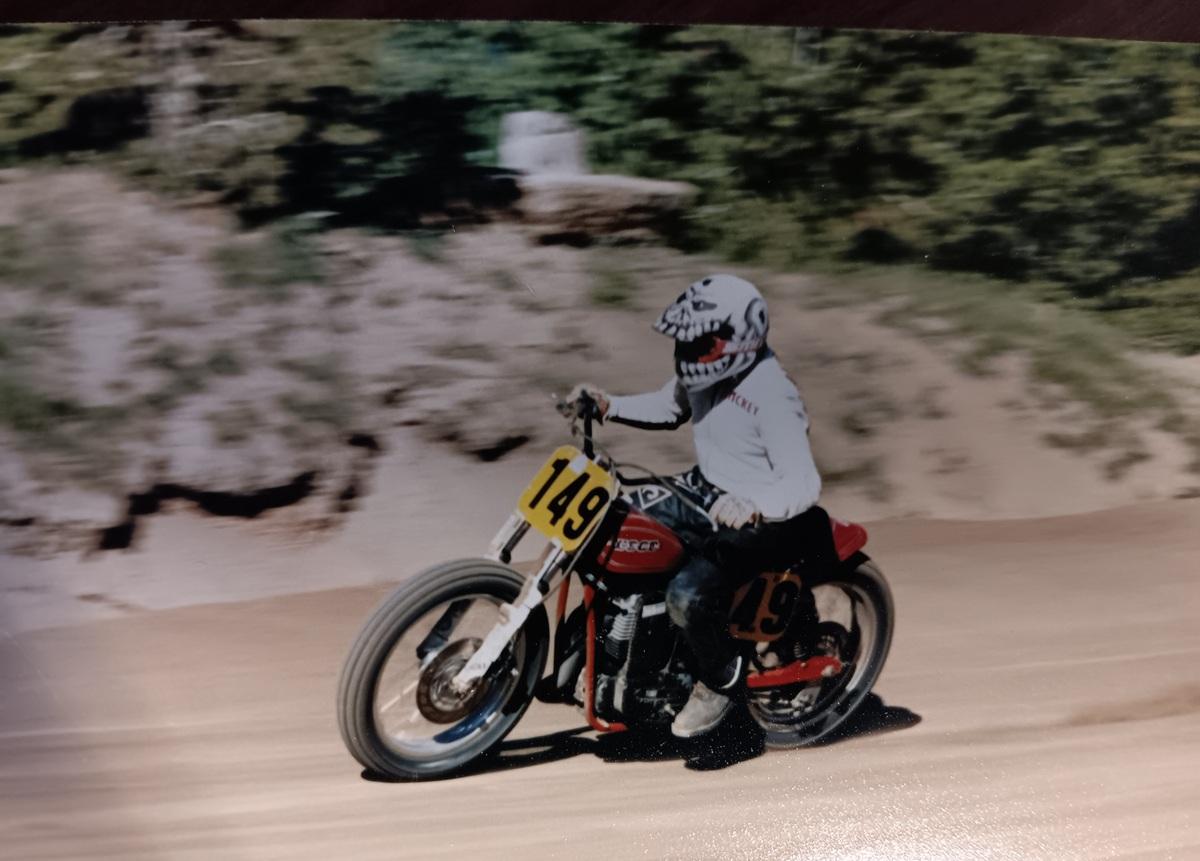 He won the motorcycle Open Amateur division and set a record in 1994. He also won in 1997 (pictured), and again on a vintage motorcycle in 2005. He earned seven additional podium finishes.