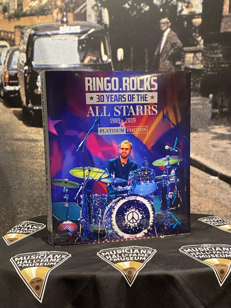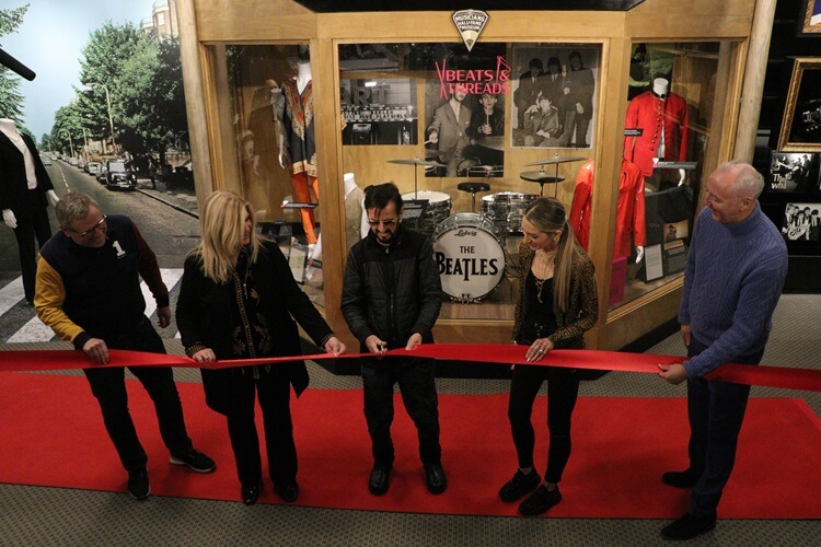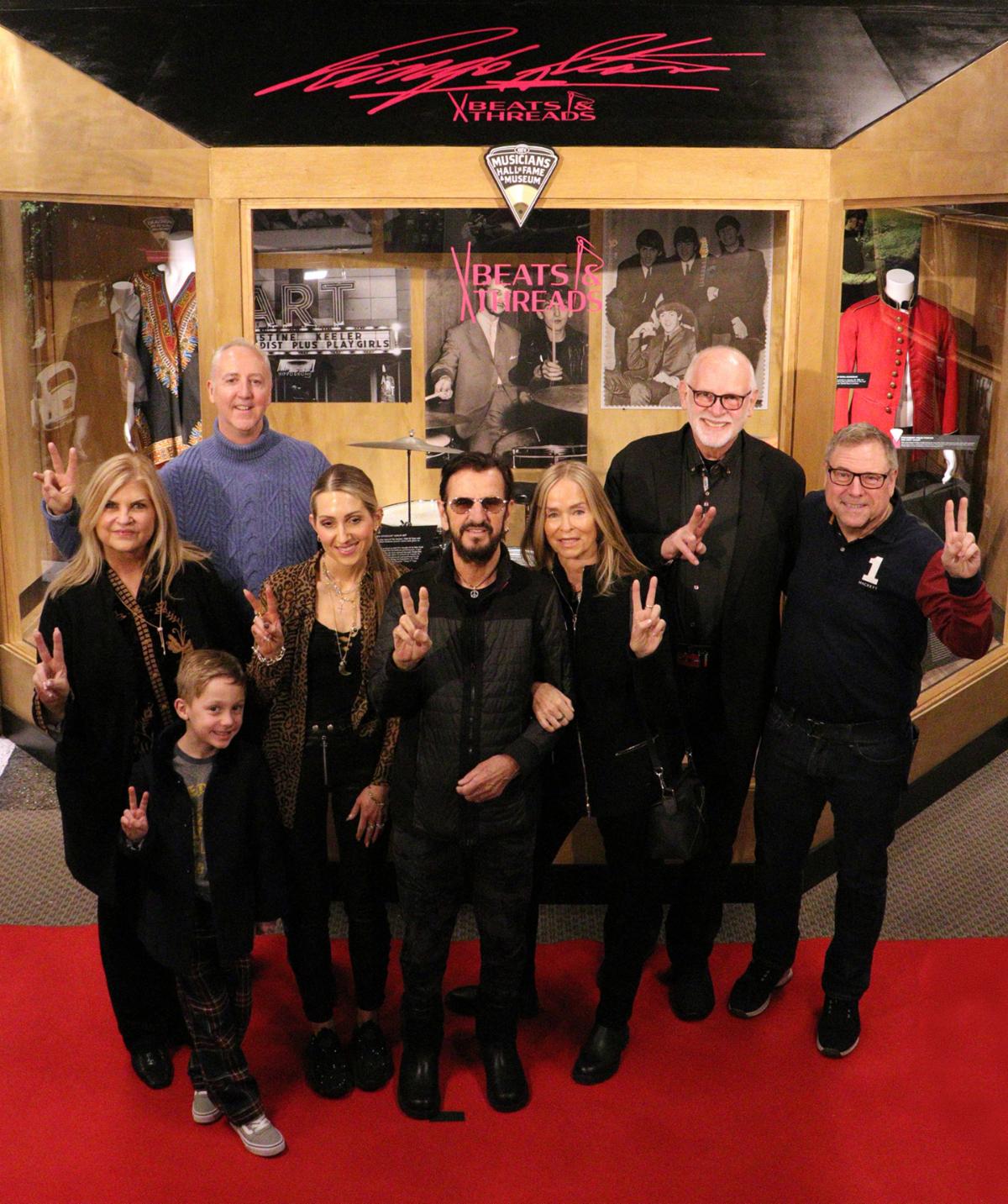 Pictured (L to R) are: Linda Chambers, Co-Founder and CEO, Musicians Hall of Fame & Museum; Sterling Chambers Hawker, Martin Nolan, Co-Founder/Executive Director, Julien*s Auctions, Britt Chambers-Hawker, Director of Museum & Artist Relations; Ringo Starr, Barbara Bach; Gary Astridge, author, "Beats & Threads" and Darren Julien, Co-Founder/Exective Director, Julien*s Auctions. |