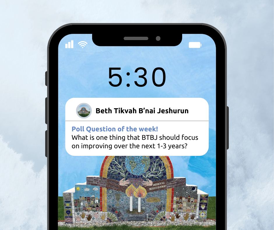 Thank you to everyone who has shared their voices through our focus groups and recent polls. Your time, honesty, and hopes for BTBJ truly mean a great deal. Your feedback shows how deeply you value our clergy, community, programs, and the meaningful connections we build together, while also highlighting areas for growth. As we continue our strategic planning, we’re grateful for your participation in our weekly polls, which help ensure every voice is heard. Thank you for being such an essential part of shaping BTBJ’s future. |