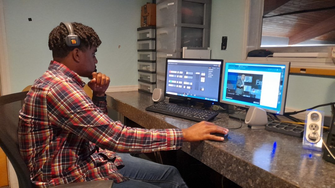 In May, George Amos III earned a new title: Beacon alum. But several months before that, the computer information systems major earned his stripes manning the video cameras and video switcher for the live stream broadcast at Frontier Church in Leesburg where he volunteered. According to Charlie Wright and Jeannette Lomberk, tech team leads at the church, his “ability to quickly learn and become proficient ... really helped us to improve our procedures and production quality.”