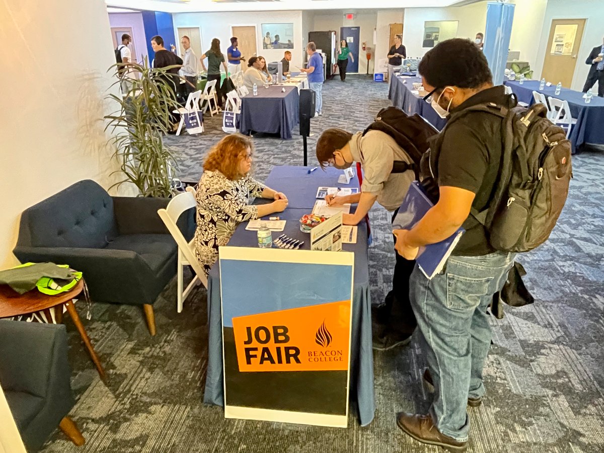 Beacon job seekers didn’t have to venture far. Nearly a dozen Central Florida employers last month attended the college’s 2022 Job Fair. Students chatted with recruiters, submitted resumes, and walked away with a better understanding of what companies need in its next batch of employees. Employers included: Area Agency on Aging of Central Florida, Inc.; Career Source of Central Florida; Career Source of Lake County; Children Episcopal Services; Citizens First Bank; City of Eustis; City of Leesburg; City of Mount Dora; Easterseals; Infotrack; and UF Health Central Florida.