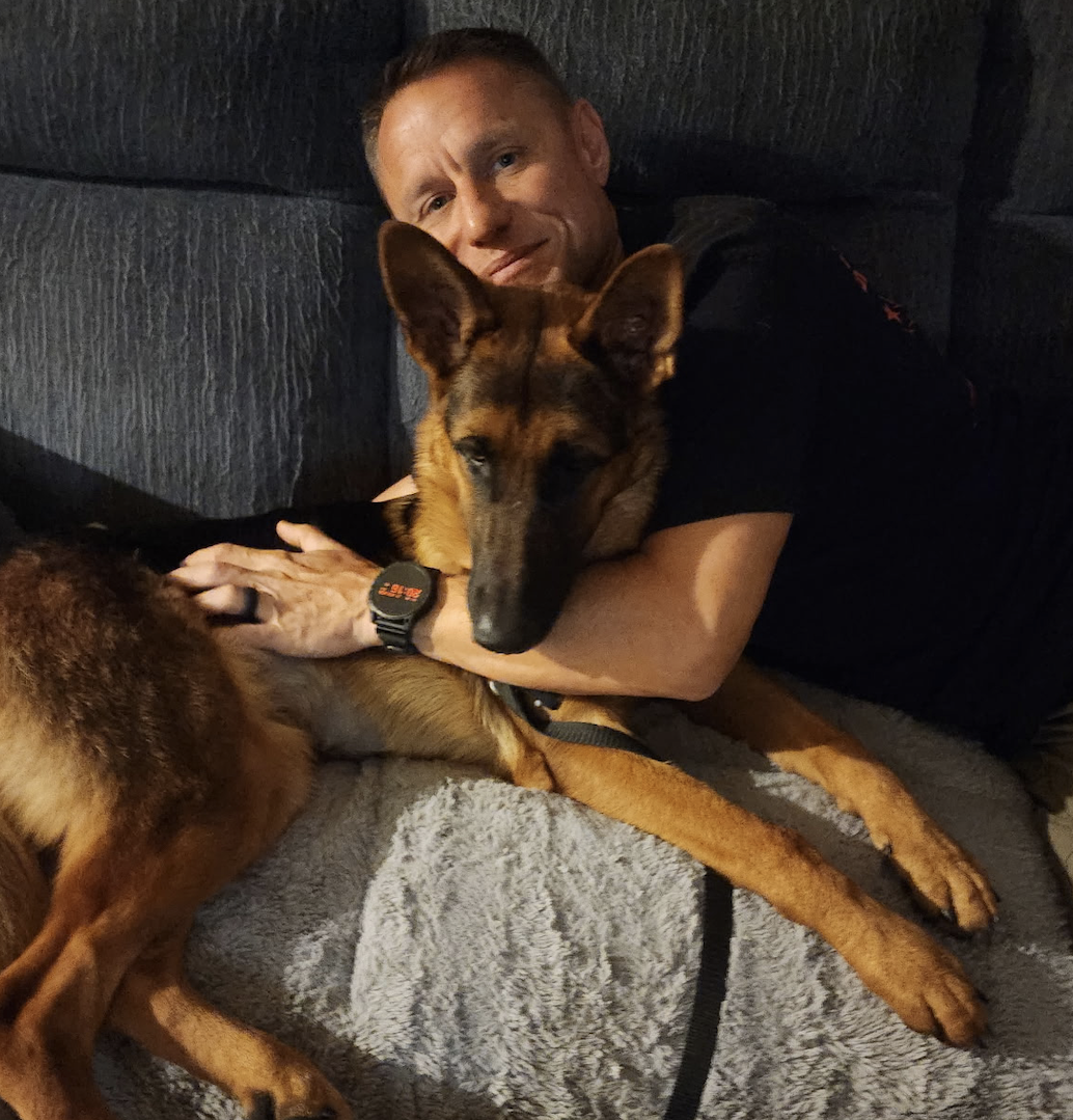 | | PBC ACC Spotlight: 'A Happy Dog Story' | | A very lucky and especially loving German Shepherd, "Penny." (Photo Source: Semper Fi Service Dogs, Inc. Exec. Director Ryan Onda) | | Semper Fi Service Dogs Inc. Executive Director Ryan Onda, with "Penny." (Photo Source: Semper Fi Service Dogs, Inc. Exec. Director Ryan Onda) | | |