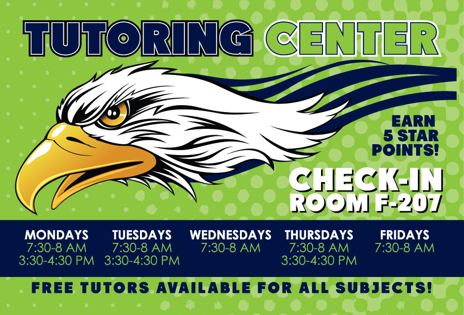SOAR Saturday School: Our next Saturday School is March 14th. Please plan on attending if you have one or more all-day absences this or last semester. Bring books, your computer, and any pending work you may have to complete in class during this day. Breakfast will be served from 7:30am – 7:45pm in G-109. Saturday school starts at 7:45am and ends at 12:00pm. Be on time to get credit! If you don’t know where to go report to G-109 to be directed to a classroom.