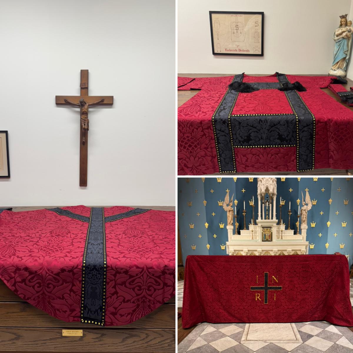 | | New Passion Red High Mass Vestments | We’re once more indebted to Watts & Co, London for their exceptional work on our new Passion Red High Mass set, commissioned by a generous parishioner. This new bespoke set will be blessed on Laetare Sunday, March 15 at the 11am Solemn High Mass and used for the first time on Palm Sunday. "You shall make holy garments for Aaron, for glory and beauty!" | | |