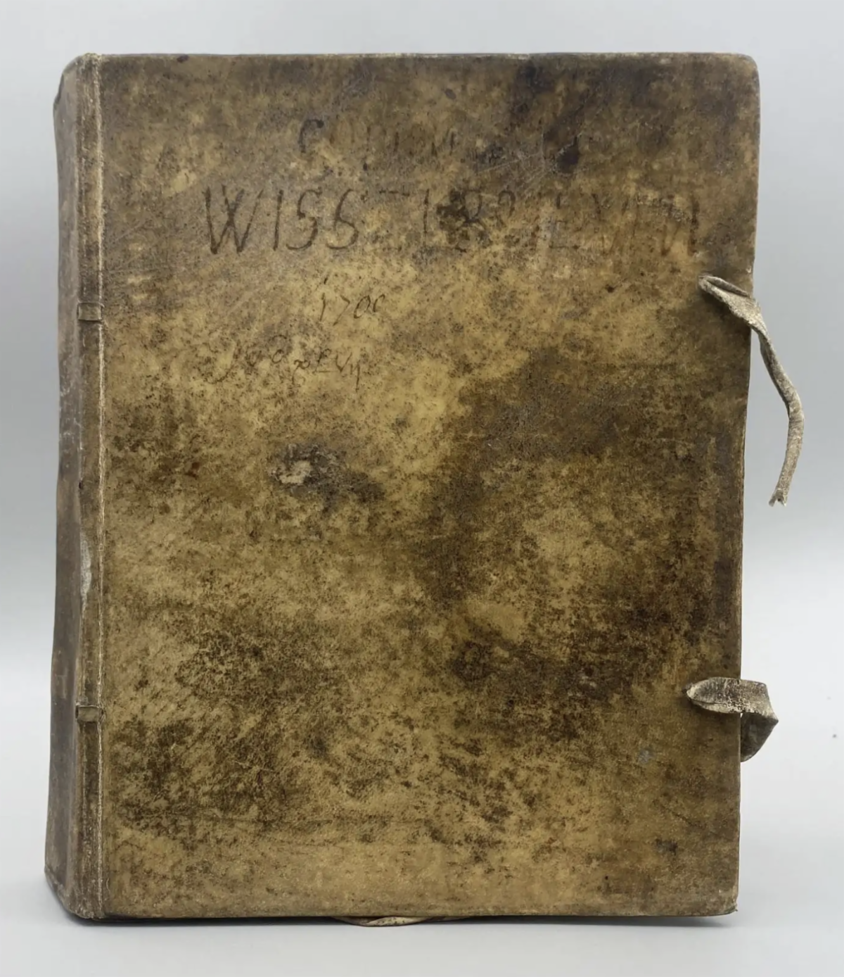 This notebook originally belonged to Anna Marij Frans (d. 1717). She wrote some Dutch verses in the front, and her ?son used it for arithmetic exercises. In 1703, she gave it to her new husband, Pieter Moentack — one of the wealthiest citizens of Bruges. He recorded over a thousand wine and liquor sales over eight years (Bruges 1700-15, 4to), keeping track of place, date, buyer and cost.