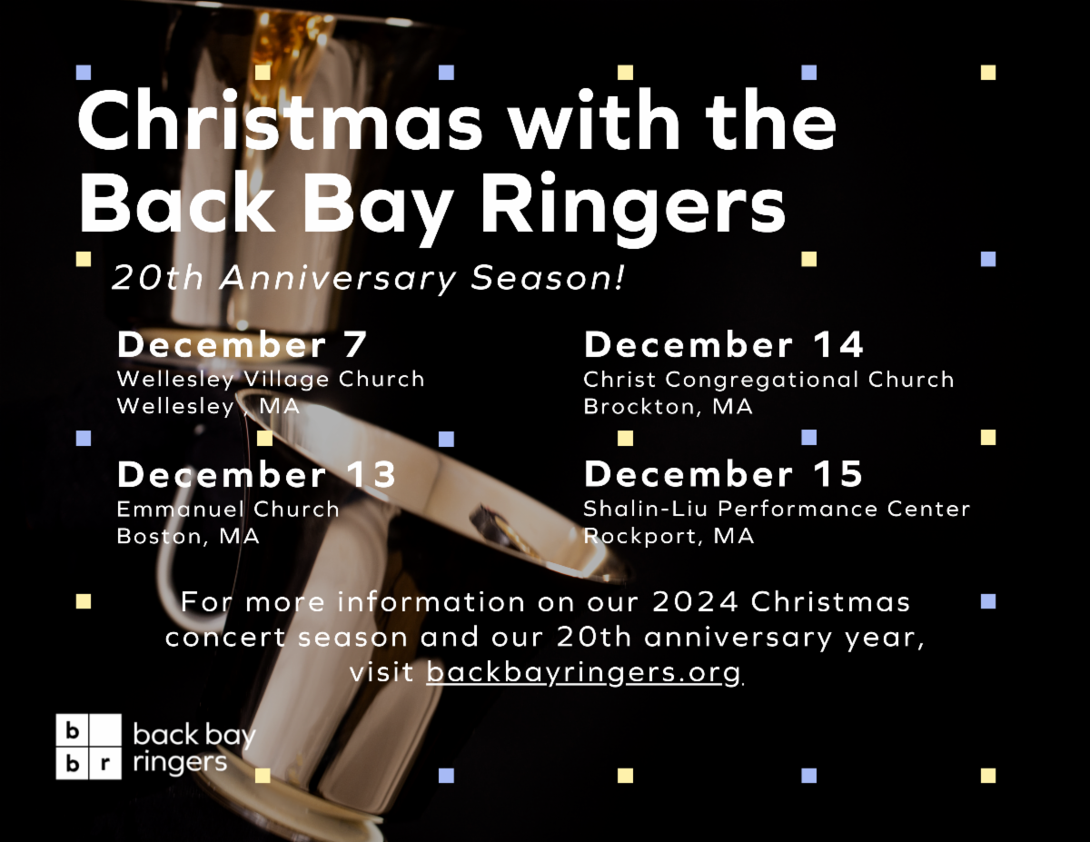 It’s never too early to mark your calendars for ringing events during the busy holiday season. Come “Ring in the Season” at the Wilbraham United Church at 3 PM on December 1. You will enjoy several handbell pieces from this small but mighty 3-octave choir as well as a few smaller special groups added for your listening enjoyment. So, kick off your holiday season in Western Mass at the Wilbraham United Church 500 Main Street, Wilbraham.