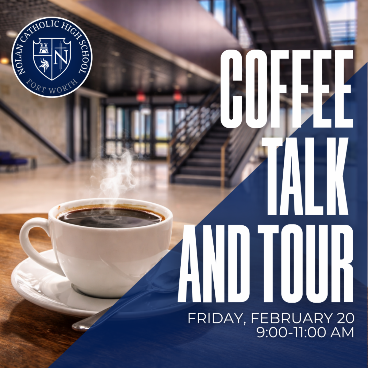 Prospective families are invited to join us for Coffee, Talk, & Tour on Friday, February 20, from 9:00–11:00 AM. This special morning is designed to give parents an inside look at what makes Nolan Catholic High School a place where students grow in faith, character, and leadership.