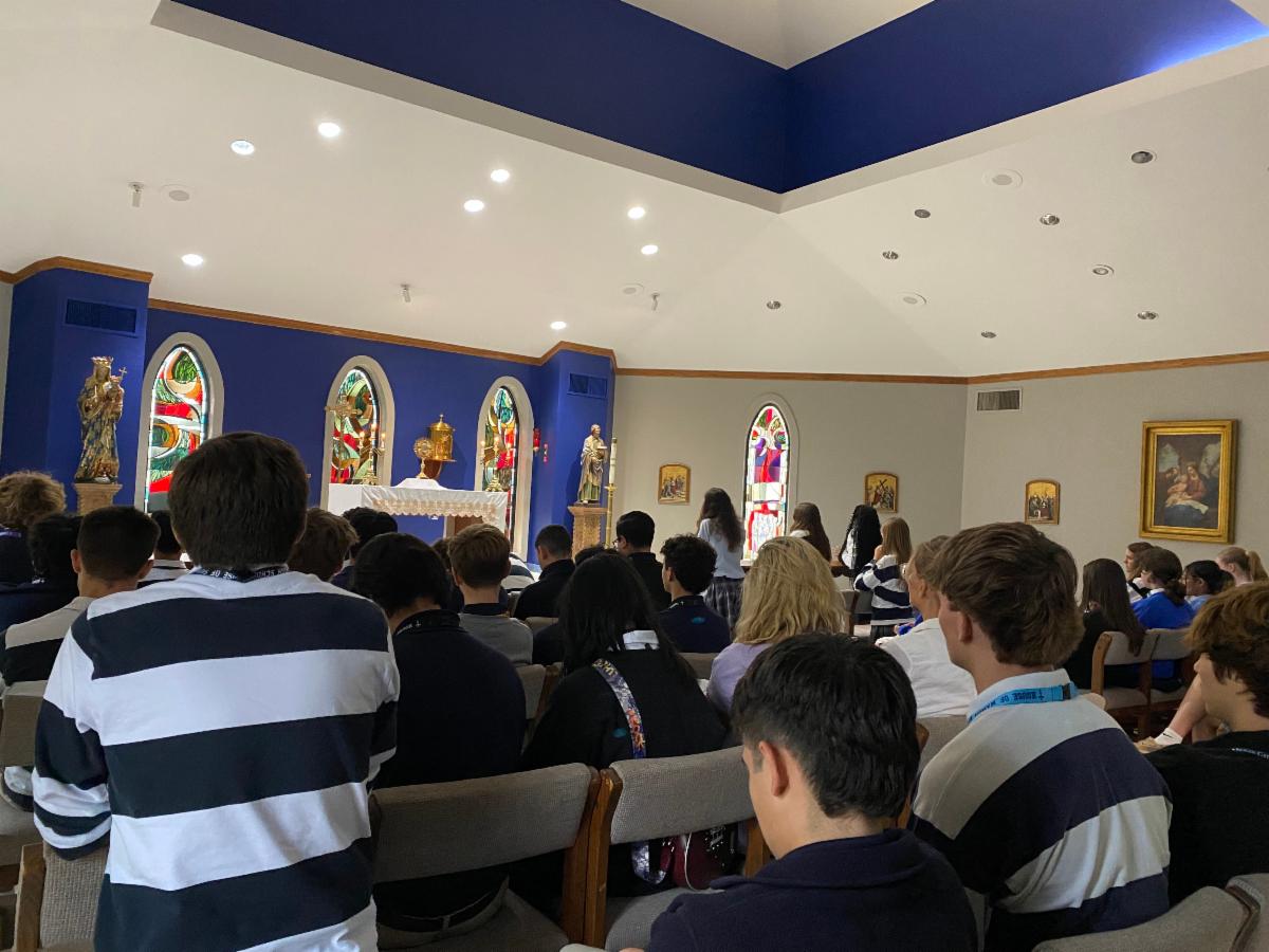 Today we joyfully began our Friday Adoration in the Mary, Mother of God Chapel! This beautiful tradition allows our students, faculty, and staff to pause and spend time with Our Lord throughout the school day.