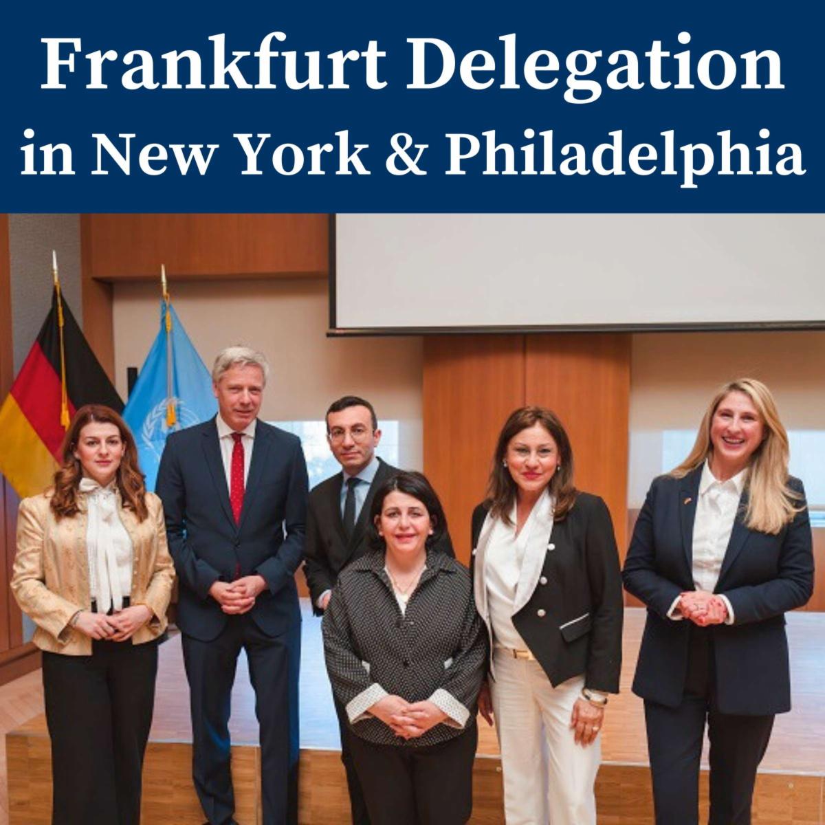 Last month, the GACC New York hosted a delegation led by Frankfurt's Mayor Mike Josef and City Council President Eileen O'Sullivan, marking the 10th anniversary of the Sister City partnership between Frankfurt and Philadelphia. The delegation’s program in New York included meetings with the New York City Civic Engagement Commission, and with German Consul General Till Knorn and Ambassador Dr. Thomas Zahneisen, Deputy Permanent Representative of Germany to the United Nations. Additional highlights included an exclusive FinTech-focused business dinner and breakfast, a visit to Eintracht Frankfurt's NYC offices, and a tour of the United Nations Headquarters.