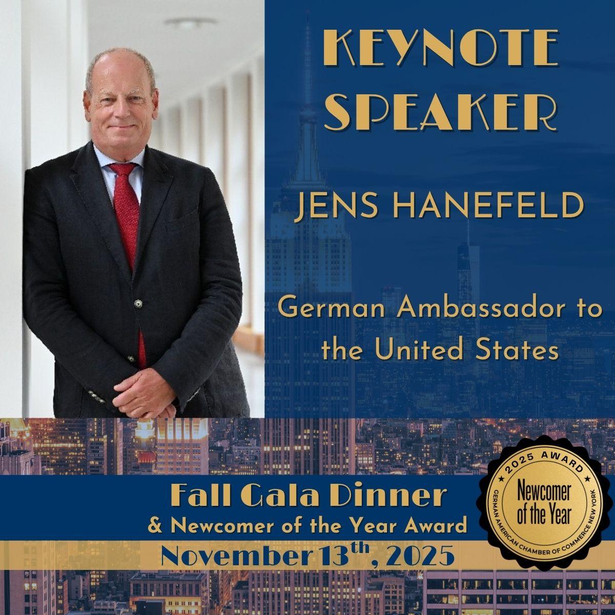 We are also honored to welcome Jens Hanefeld, German Ambassador to the United States, as our keynote speaker for the evening.