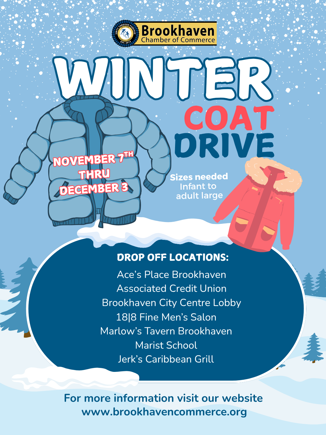 The Chamber's Winter Coat Drive is officially running through December 3rd. We are collecting new or gently worn coats in all sizes, from infant up to adult large, to benefit the neighbors served by the Latin American Association of Atlanta. For more information and where to drop off coats, click here.