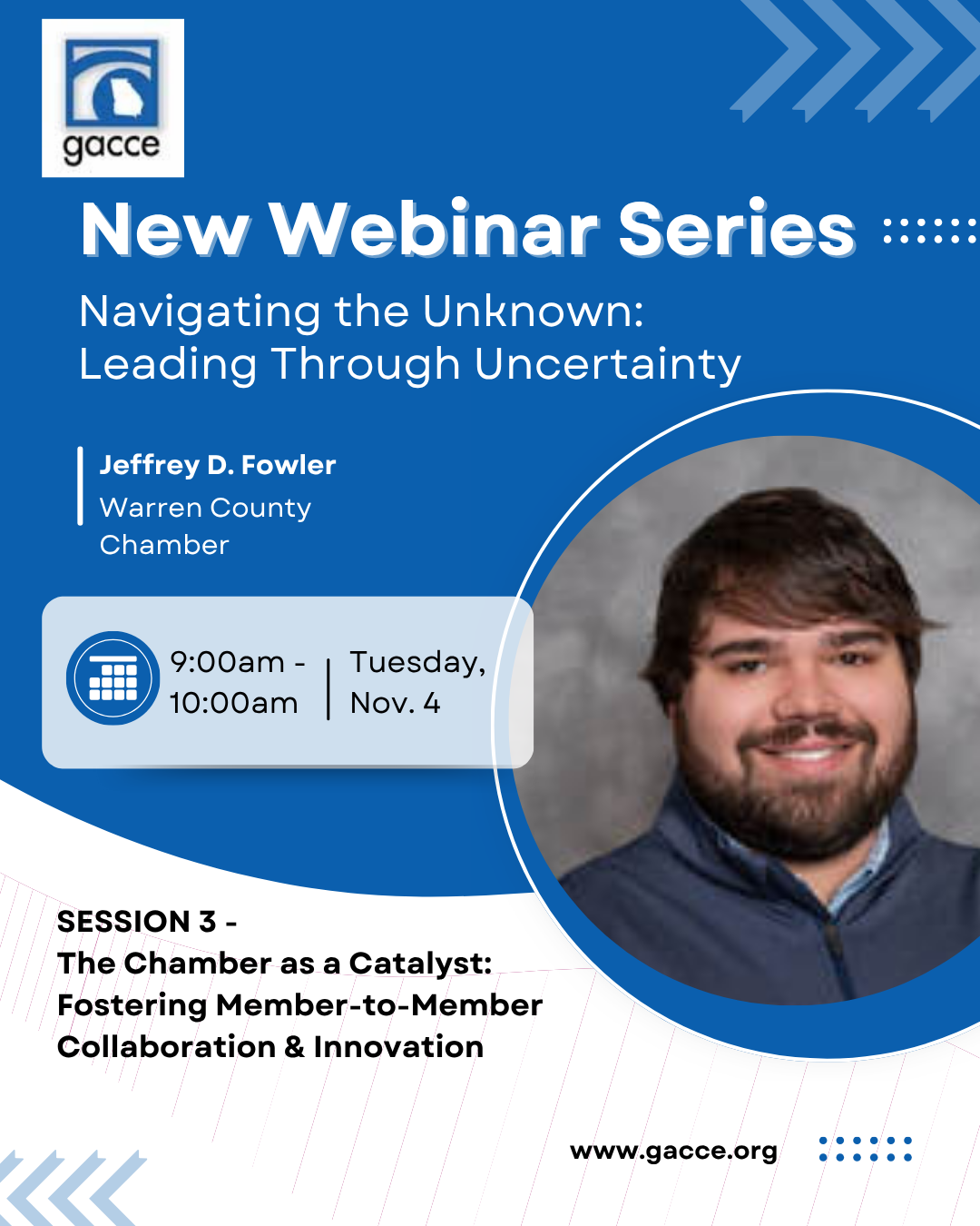 In an era of rapid economic shifts, technological advancements, and unforeseen disruptions, the ability to lead with resilience and foresight is paramount for Chamber of Commerce professionals. This four-part webinar series is meticulously designed to equip chamber leaders with the essential skills and strategies to not only navigate uncertainty but also to empower their members and communities to thrive amidst it. Each one-hour session will provide actionable insights, practical tools, and collaborative opportunities to foster a proactive and adaptive approach to leadership.