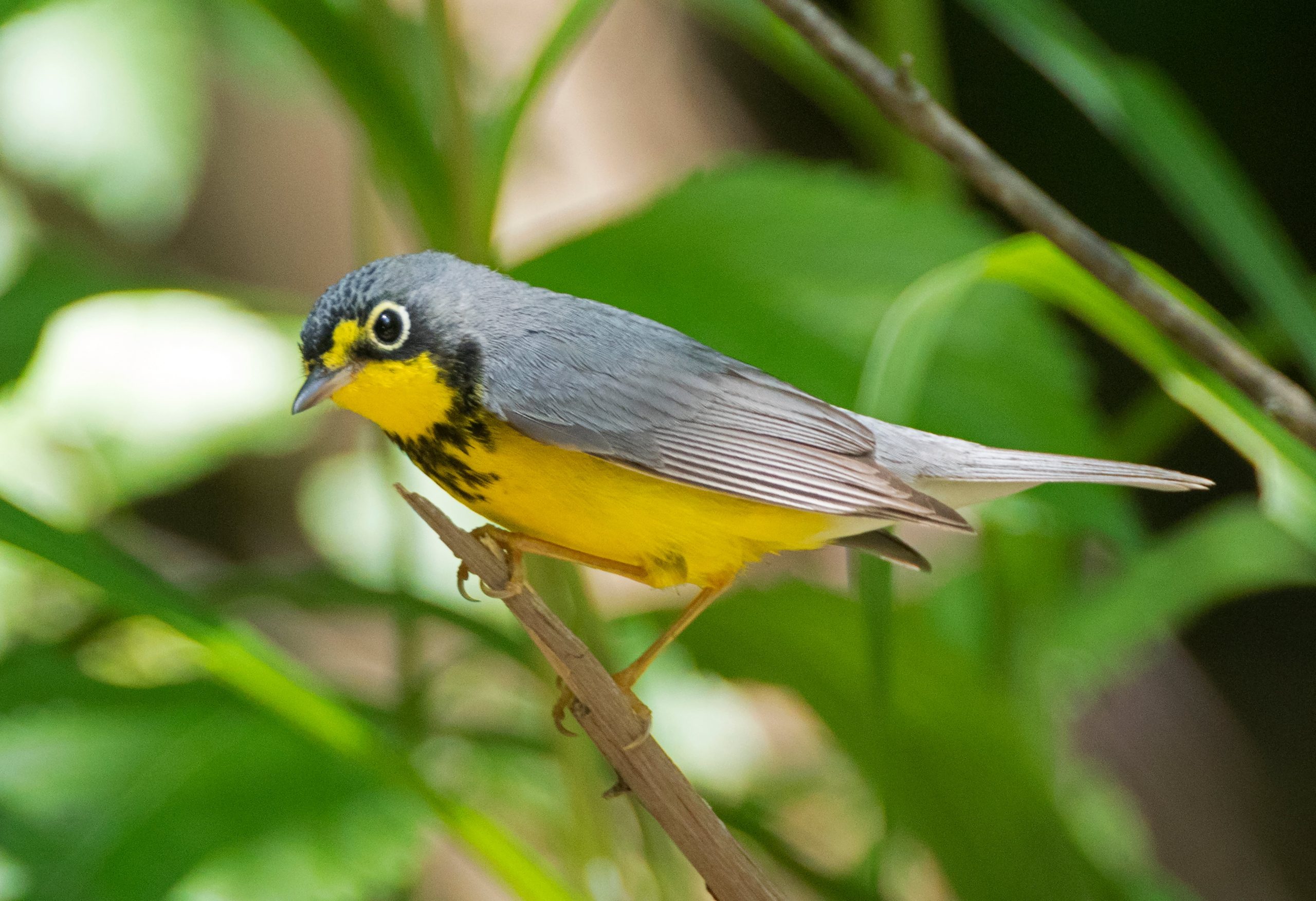 The Canada Warbler, (Wilsonia canadensis or Cardellina canadensis depending on which authority you support), was first described by C. H. Bonaparte in 1850 and is monotypic and grouped with Wilsons, Red, Red-faced and Pink-headed Warblers. Canada Warblers are migratory, breeding in the Northeast US and Eastern Canada wintering in Northern South America. It is found throughout the central and Eastern US during migration including here in Texas. Note it is a late migrant, being found in Texas in May.