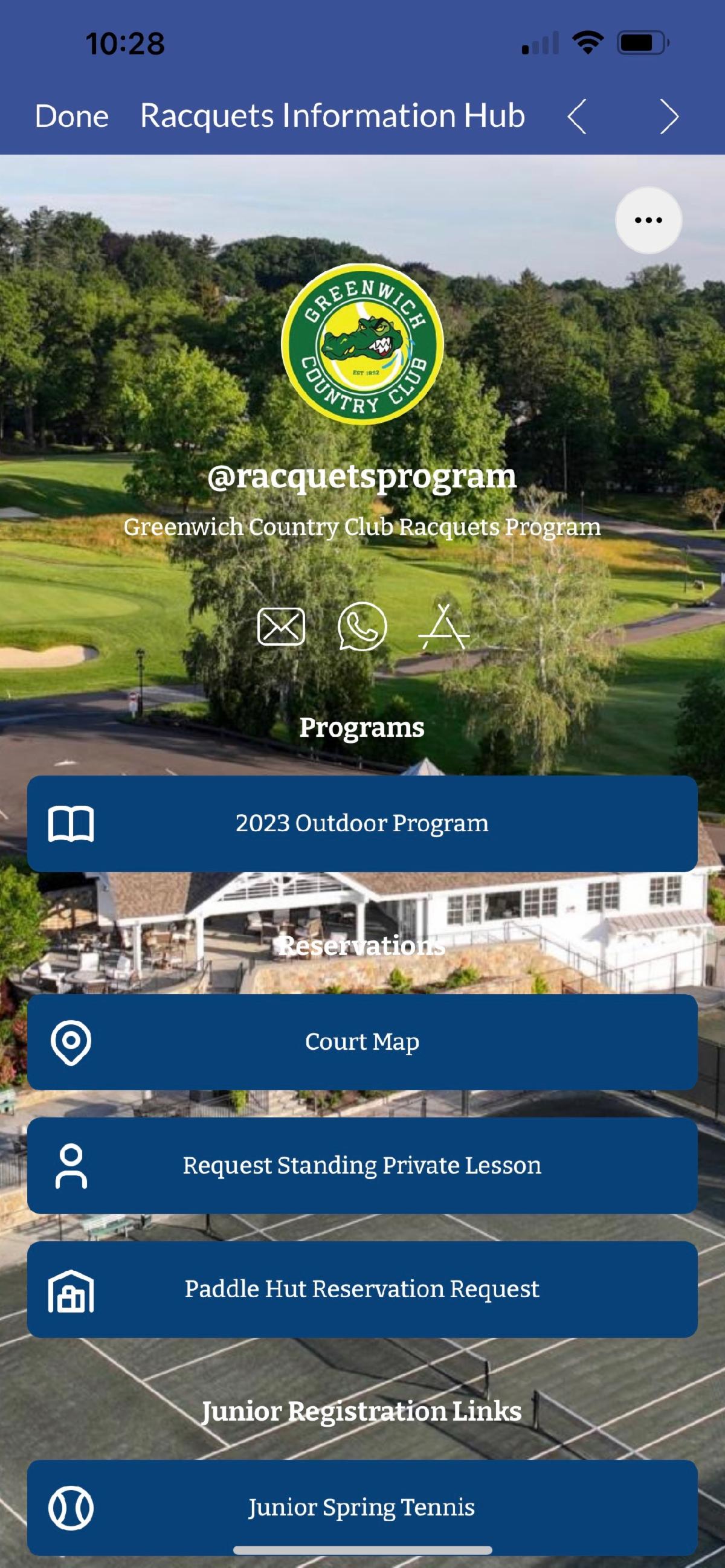 Check out the new module - an easy way to access all the information about our Tennis, Paddle, and Pickleball programs. You can also find links to the different leagues the club participates in, as well as member favorite music playlists, contact information, and more... check it out!