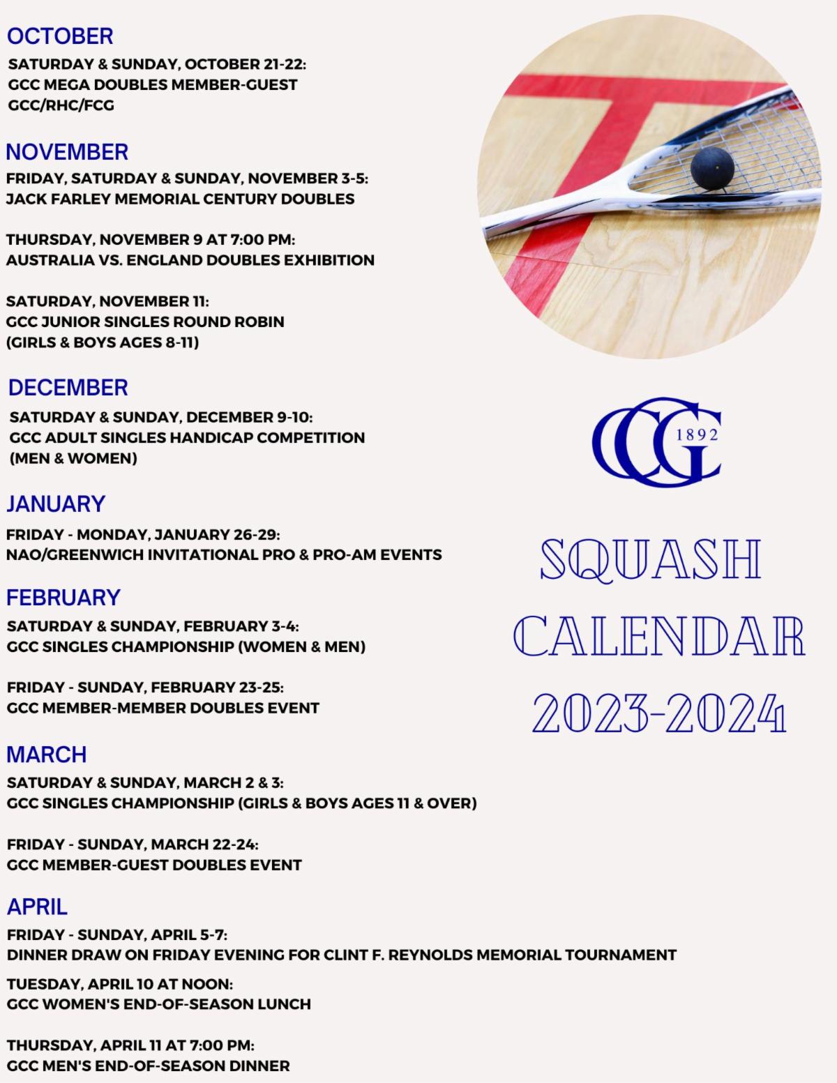 Please note that all of our activities and registration will be on the GCC app and members must sign up in order to participate. This gives all members the opportunity to register for any open event. All signups will be first come, first served. Clinics require a seven day window for signups. Events and parties require an extended window for reservations, please contact Juan directly for more information. | |