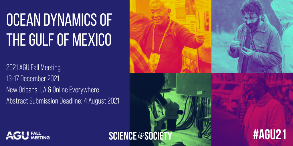 The Gulf Research Program is convening a session on Ocean Dynamics of the Gulf of Mexico during the 2021 American Geophysical Union (AGU) Fall Meeting. It will focus on advances in understanding and forecasting open ocean dynamics in the Gulf. Abstract submissions for speakers are invited by Aug. 4, 2021.