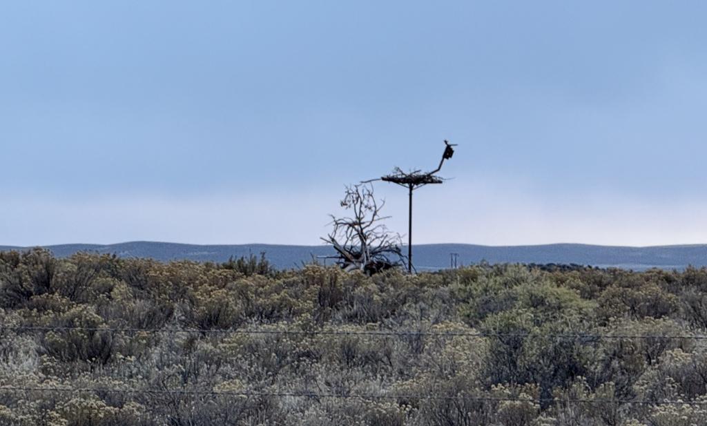 The iconic ferruginous hawk nest south of Burns on Hwy 205 a few miles north of the Narrows has a new nesting platform.