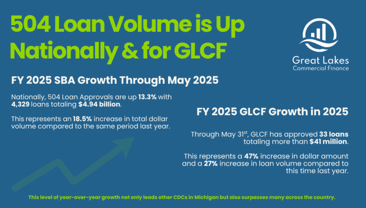 At GLCF, we’re experiencing this growth firsthand. Through May 31, we’ve approved 33 loans totaling more than $41 million—up from 26 loans and $27.9 million in the same period last year. That’s a 47% increase in dollar amount and a 27% increase in loan volume. This level of year-over-year growth not only leads other CDCs in Michigan but also surpasses many across the country, reinforcing GLCF’s role as a results-driven, high-performing lending partner.
