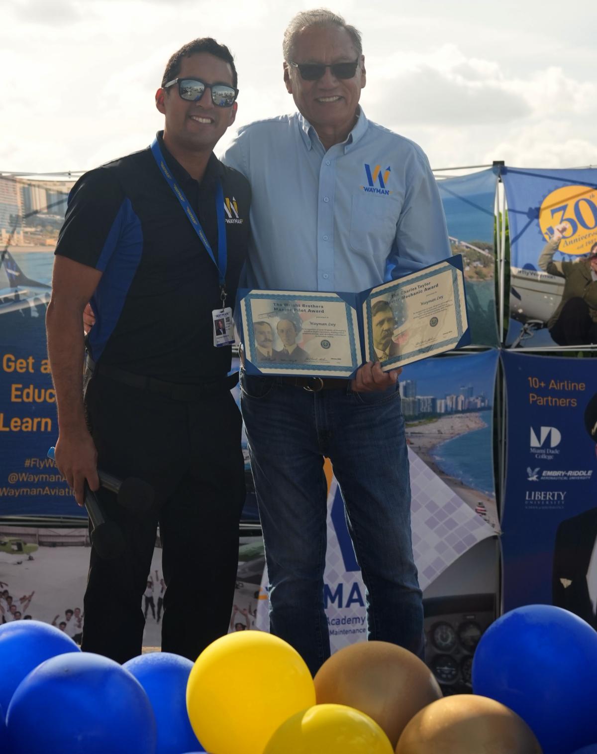Captain Wayman Luy Sr. has been honored with both the Federal Aviation Administration's (FAA) Wright Brothers Master Pilot Award and the Charles Taylor Master Mechanic Award, recognizing his remarkable 50+ year career in aviation.