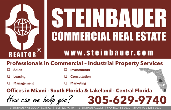 Steinbauer Commercial Real Estate has served the Air Line industry since establishing in1981 in Miami (Souith Florida) and Lakeland (Central Florida -Orlando and Tampa). John Steinbauer (SIOR) is a member of the Society of Industrial and Office Realtors that has over 4,000 members worldwide to serve throughout the US and Worldwide. Give John a call at 305-794-7676 for a personal consultation.