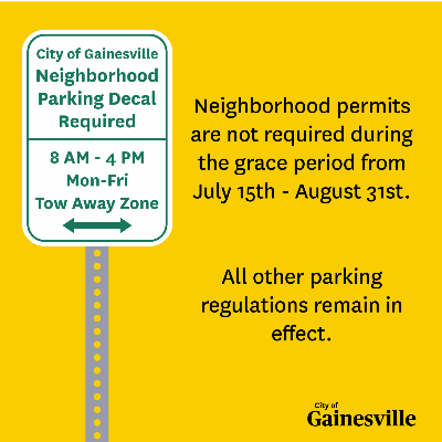 The City of Gainesville is no longer issuing physical decals for on-street parking, as the permit is associated with the license plate. Parking permits for the 2021-22 permit cycle can now be purchased. The best way to purchase a permit is to purchase online. Please visit the parking webpage and review information before purchasing.