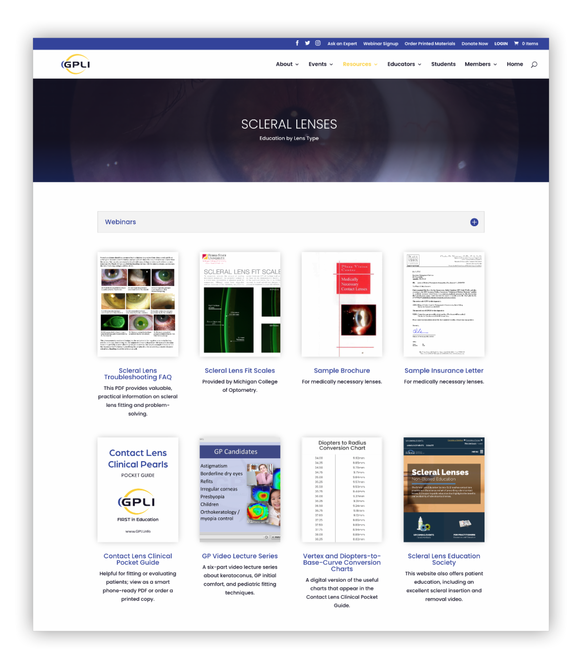 Archived Webinars (for members). Over 25 webinars pertaining to scleral lenses are included in our library.