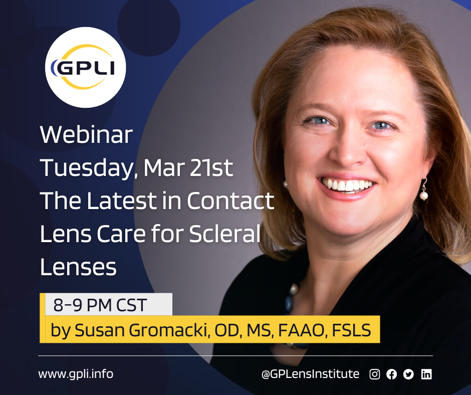 This past Tuesday night was very significant as we hosted our first member-exclusive webinar with complimentary COPE continuing education credit entitled “Advancements in Scleral Lenses” from renown scleral lens innovator, clinician, author, and lecturer, Dr. Greg DeNaeyer. Dr. DeNaeyer is an Advisory Board member, past GP Practitioner of the Year recipient from the GP Lens Institute, past founder and president of the Scleral Lens Education Society, as well as their Scleral Lens Practitioner of the Year. As expected, his webinar emphasized how you can optimize scleral lens success in 2023 using the technology available to us. It also represented the beginning of a program that has been several years in the making and that is, of course, our GPLI Membership program. This program has 13 benefits associated with it including free COPE continuing education webinars, podcasts, access to an entire library of specialty contact lens presentations given at our annual Cornea and Contact Lens Residents Symposium, an online specialty contact lens clinically-based journal, access to both our coding and billing and staff modules, access to all archived webinars, free printed materials, and many more. We have almost 450 members to date and growing every day.