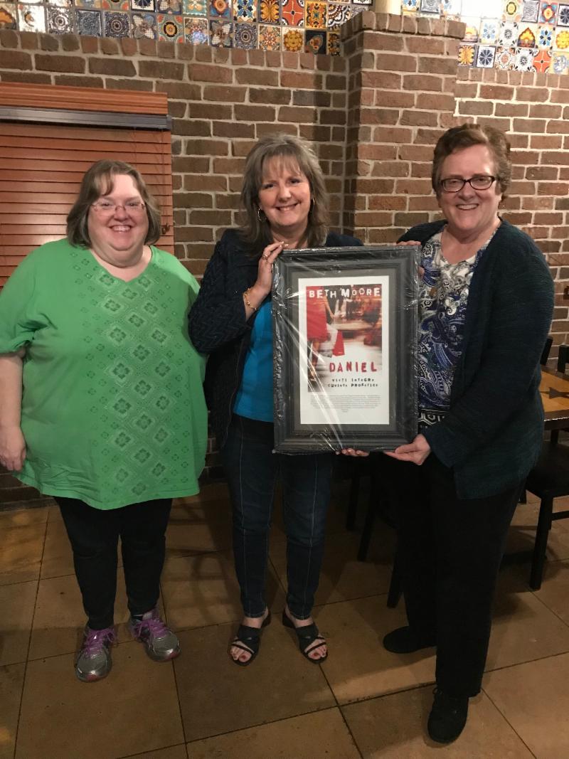 And speaking of the DANIEL Bible study, upon my return to Texas I was super pleased to present to one of my dearest and long time friends, Magan Yarbrough, a framed copy of the cover of the Bible study with the dedication to her that was printed on the inside of the workbooks. She's been an Officer and Director for BGT for 10 years, and is an anchor of faith and vision. Love this dear woman of God. Our mutual friend, Michele Caldwell, joined us for dinner and celebration of God's goodness through ministry together. Michele is an awesome website host and designer!