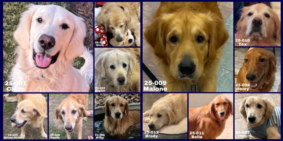 Please welcome Tex 25-010, an almost 8-year-old, who was rehomed to GRR due to changes in his previous owner’s situation so that he could no longer care for Tex. Tex is with his Hope to Adopt Family and we are excited to see him settle in and adjust to his life as a GRR Golden. Welcome to your new life Tex! | | |