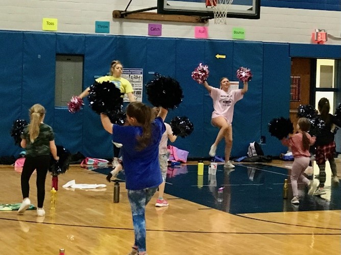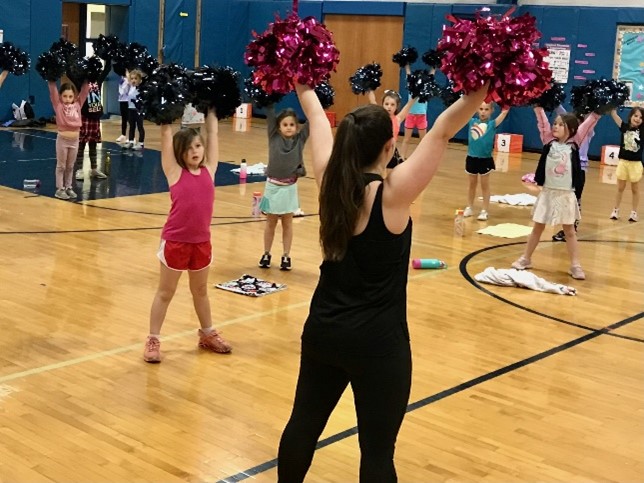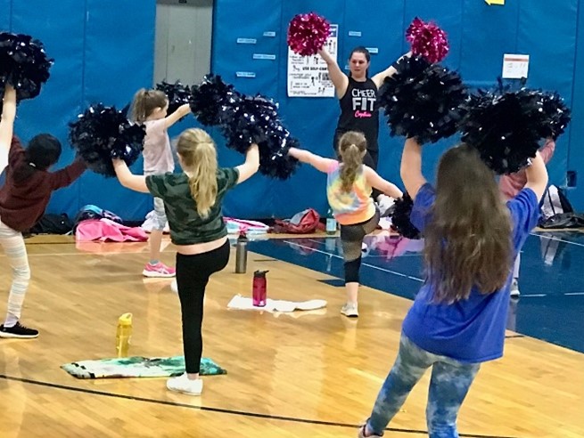 Coach Lexi and Coach Milan teach choreography to a new song each week, which includes two exercises and a dance within each song. This is a fun way for the athletes to workout. Our GV Cheerleaders love routines to songs!