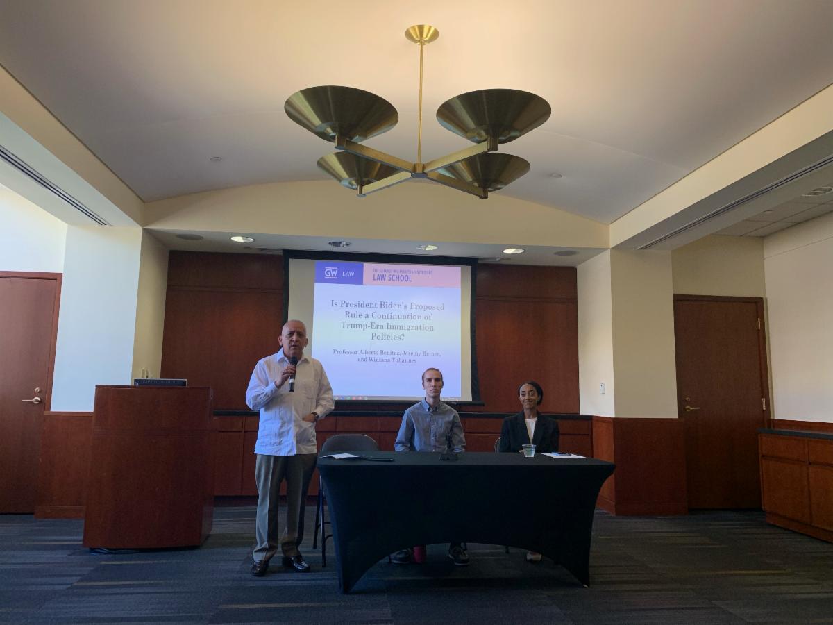 On April 4th, 2023, the ICL Program hosted an immigration law event discussing whether President Biden’s proposed rules on immigration matters were just a continuation of Trump-Era immigration policies. Wintana Yohannes, JD 2023, and Jeremy Reiner, JD 2024, led the presentation, which was moderated by Professor Alberto Benitez. The recording of this event can be found here.