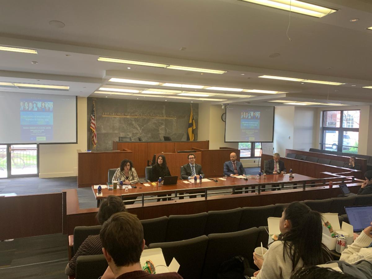 On March 2nd, 2023, the ICL Program hosted a networking event for the students to meet practitioners in various practice areas of international law. We were joined by various adjunct professors, GW Law alumni and other attorneys who practice international law for law firms, the U.S. Government, and more. Professors Trent Buatte, U.S. State Department; Alberto Cid, Inter-American Development Bank; Michael Coffee, U.S. Department of Justice; Melissa Kucinski, MK Family Law, PLLC; Katherine Nesbitt, U.S. Department of Justice; and Shayda Vance, Hughes Hubbard & Reed; as well as alumni Taylor Kilpatrick, American Society of International Law; and Mariam Anaïs Gnakra, The World Bank Group; and Ricardo Chirinos, Covington & Burling LLP, were all in attendance to speak with our students. The ICL program greatly thanks all of these expert practitioners for dedicating their time and sharing their wisdom and career experiences with our students.