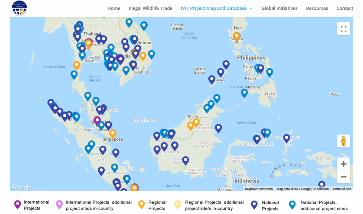 Launched in May 2021, the IWT Project Map and Database initially presents detailed and disaggregated information on counter-IWT projects, including data on project partners, locations, and funding from eight Southeast Asian countries: Cambodia, Indonesia, Lao PDR, Malaysia, the Philippines, Singapore, Thailand, and Vietnam. Efforts are underway to cover other countries and regions worldwide.