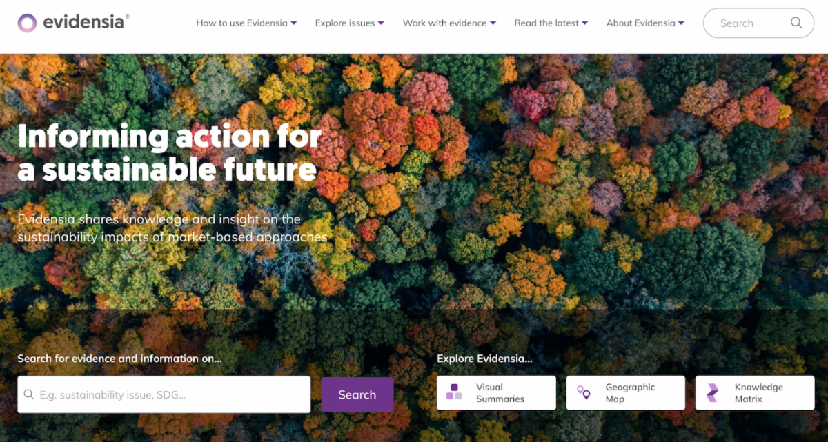 Founded in 2019 by ISEAL, WWF, and Rainforest Alliance, the Evidensia platform hosts the largest online library of credible evidence on the impacts of market-based approaches to inform sustainability action and policy. It has a growing number of partners working to put evidence and science at the heart of sustainability practice and policy, including some of our partners such as UNDP, CI, and WWF. The platform covers topics such as livelihoods, supply chains, plant and wildlife conservation, and rights of Indigenous Peoples and Local Communities. You can search for evidence by theme, sector, region/country, SDG and other filters. You can sign up for Evidensia's bi-monthly newsletter via their website below. For more information or to speak with the Evidensia team, please contact evidensia@isealalliance.org.