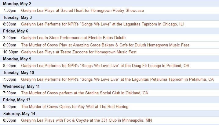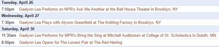 This Spring is going to be quite the whirlwind! I will be playing several shows around the country for NPR Music's "Tiny Desk Contest On the Road" and I'm playing many fun shows in Duluth & the Twin Cities! I would love to see you out at a show, wherever you may be!