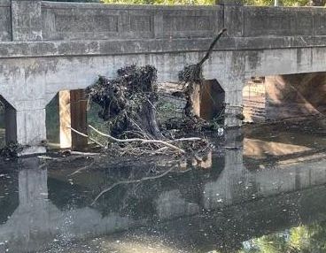 A large tree stump, carried by the current, recently became lodged at the Stonebridge crossing along Turtle Creek. Such debris poses a risk of flooding by obstructing the water flow, becoming a gathering point for trash, making the area unsightly and potentially odorous.