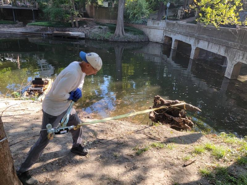 This task was not simple; the stump's size presented a significant challenge. However, our dedicated vendor, Trash Free Waterways, exemplified determination and tenacity, successfully removing the cumbersome obstruction. This action not only prevented potential problems but also preserved our creek's natural beauty and safety.