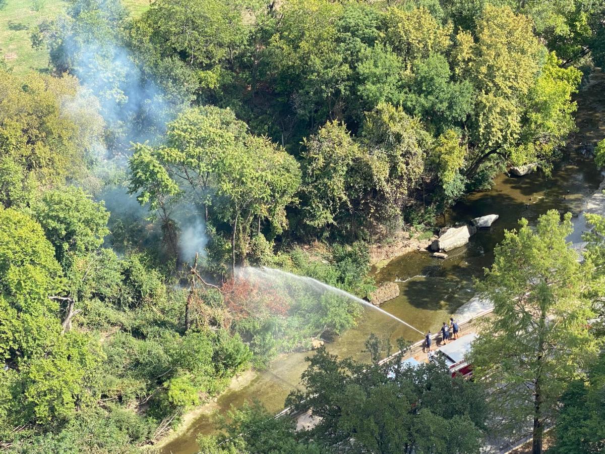 The origin of the fire was traced back to a homeless encampment within the woods. This location is known for its thick brush which provides cover, making it a common spot for such encampments. On August 27, Turtle Creek Association’s (TCA) vendor, Trash Freeway Waterways, first reported this encampment through the city’s 311 mobile app and then TCA leadership communicated the finding to the Turtle Creek Conservancy (TCC). Following proper permissions, the site was initially cleared by TCA.