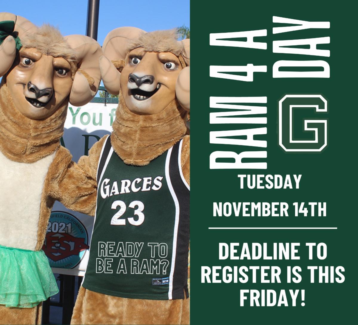 Friday, November 10th is the last day to sign our student up for Ram for a Day!