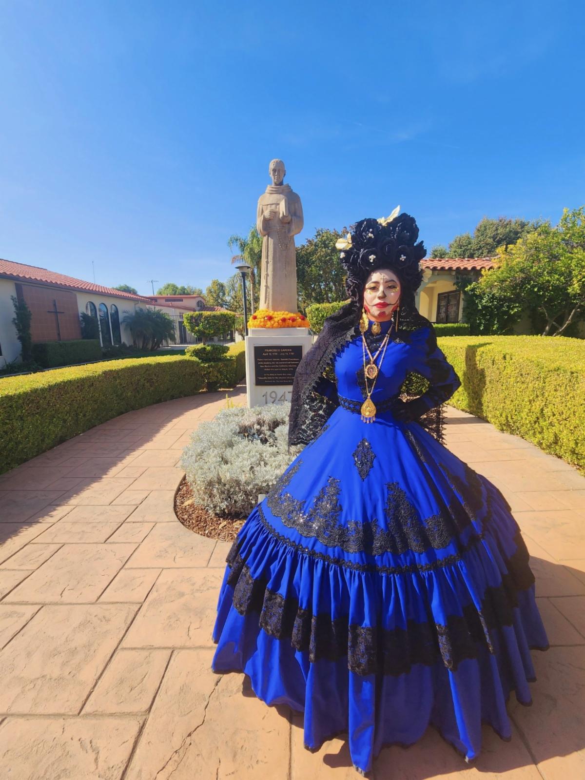 In 1910, La Calavera Catrina was originally a satire sketch created by Mexican cartoon illustrator Jose Guadalupe Posada. Today, it is one of the most important symbols of Dia de Los Muertos. She guides the dead to the living and they celebrate the holiday together. Apolonia spent the day dressed as La Catrina to celebrate Dia de Los Muertos. She competes in various competitions internationally and her presence at Garces was important as we celebrate the souls of the deceased.