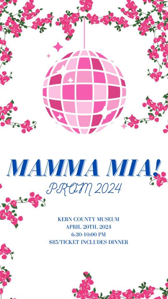 Here we go again … Our "Mamma Mia!" themed prom is set for April 20 from 6:30-10 p.m. (doors close at 7 p.m. and open at 9:30 p.m.) at the Kern County Museum Neon Courtyards. Tickets are pre-sold the week of for $85 per ticket and dinner is included. Outside guests are permitted upon completion of the attached guest permission form and approval by Mr. Olson. If you are interested in winning two free tickets, simply email Mrs. Thompson or DM the Garces Instagram your prom-posal by April 18 by 3:30 p.m. for consideration.