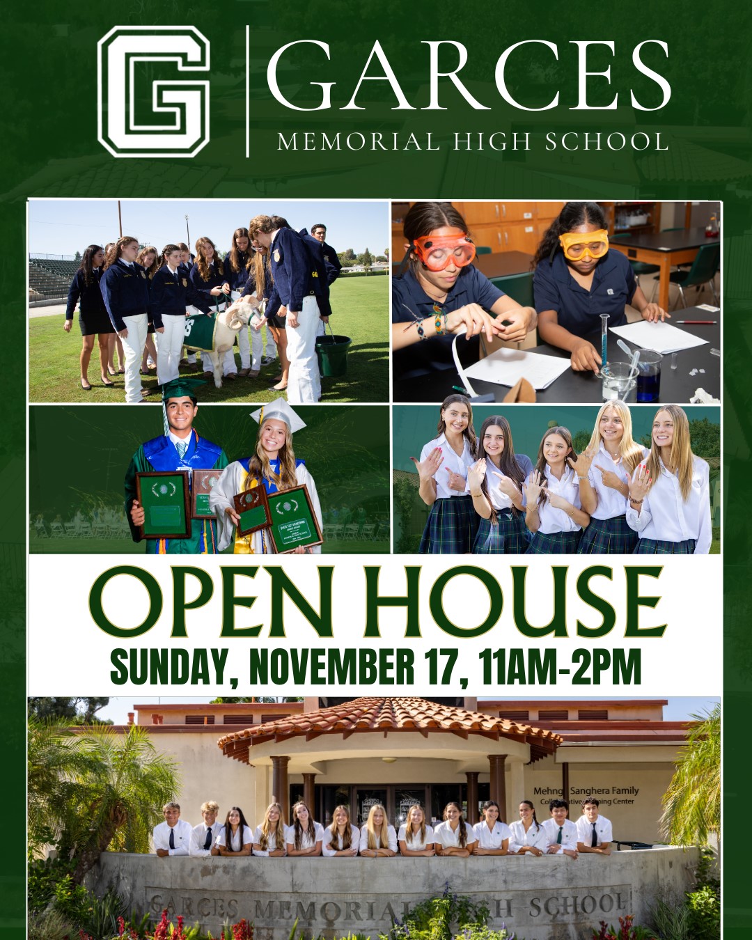 Garces has added an Open House to our list of admissions events. This is a great opportunity to come with the family and see what Garces has to offer. Meet our students, teachers, staff, and coaches. | | |