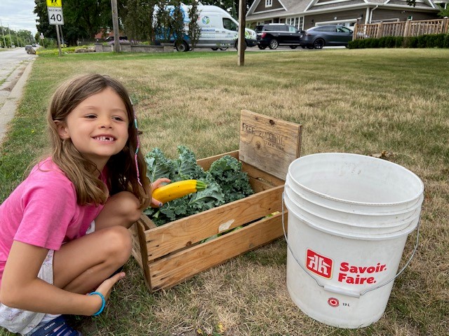 Even Mark has matured with time and now he puts his excess produce in a wooden crate with a sign telling passersby that it is free for the taking.
