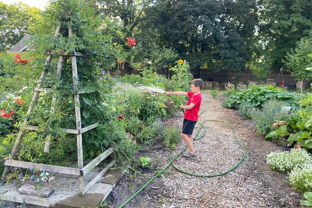 | | Grandson, Neil, watering Mark's garden | |